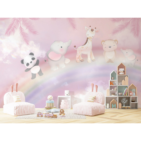 Carta da parati panoramica per bambini - Animali Arcobaleno