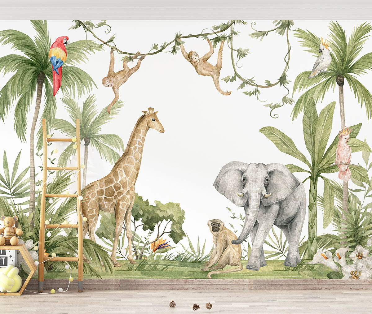www.lumalea.it > Carte da parati > Carta da Parati Panoramica > Per i Bambini > Carta da Parati Panoramica > Carta da parati panoramica per bambini - Animali della Giungla