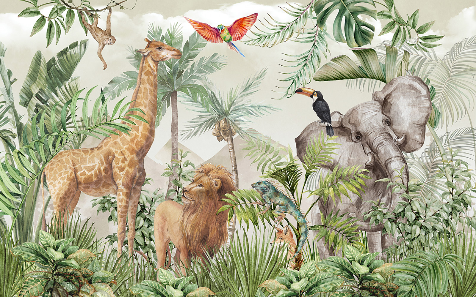 Carta da parati panoramica per bambini - Animali della giungla