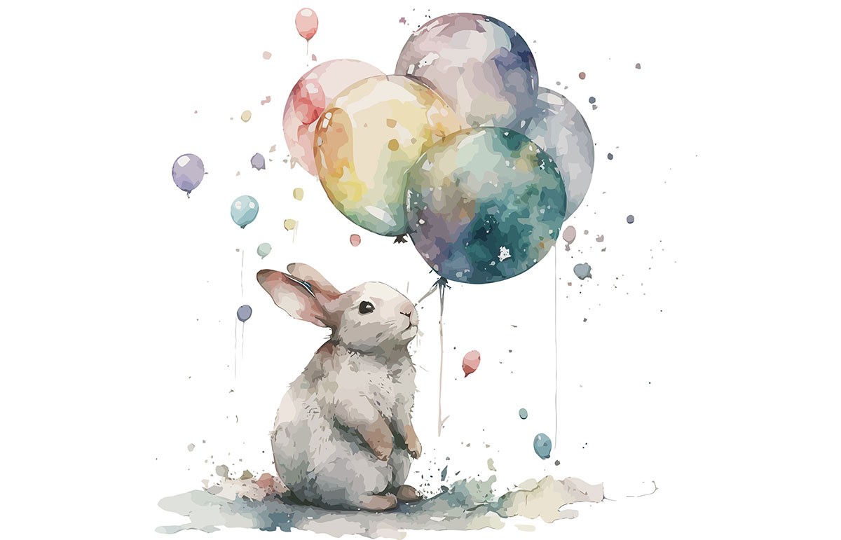 Carta da parati panoramica per bambini - Coniglio Palloncini