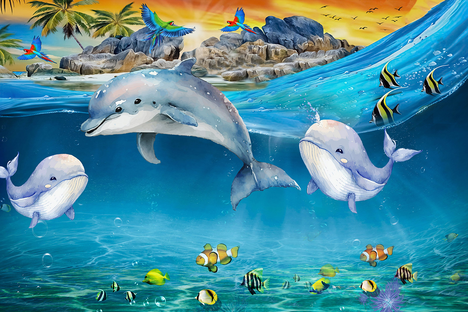 www.lumalea.it > Carte da parati > Carta da Parati Panoramica > Per i Bambini > Carta da Parati Panoramica > Carta da parati panoramica per bambini - Delfini