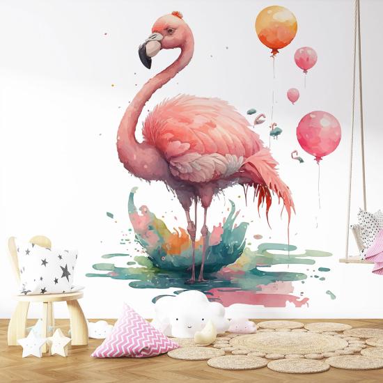 Carta da parati panoramica per bambini - Fenicottero rosa palloncini