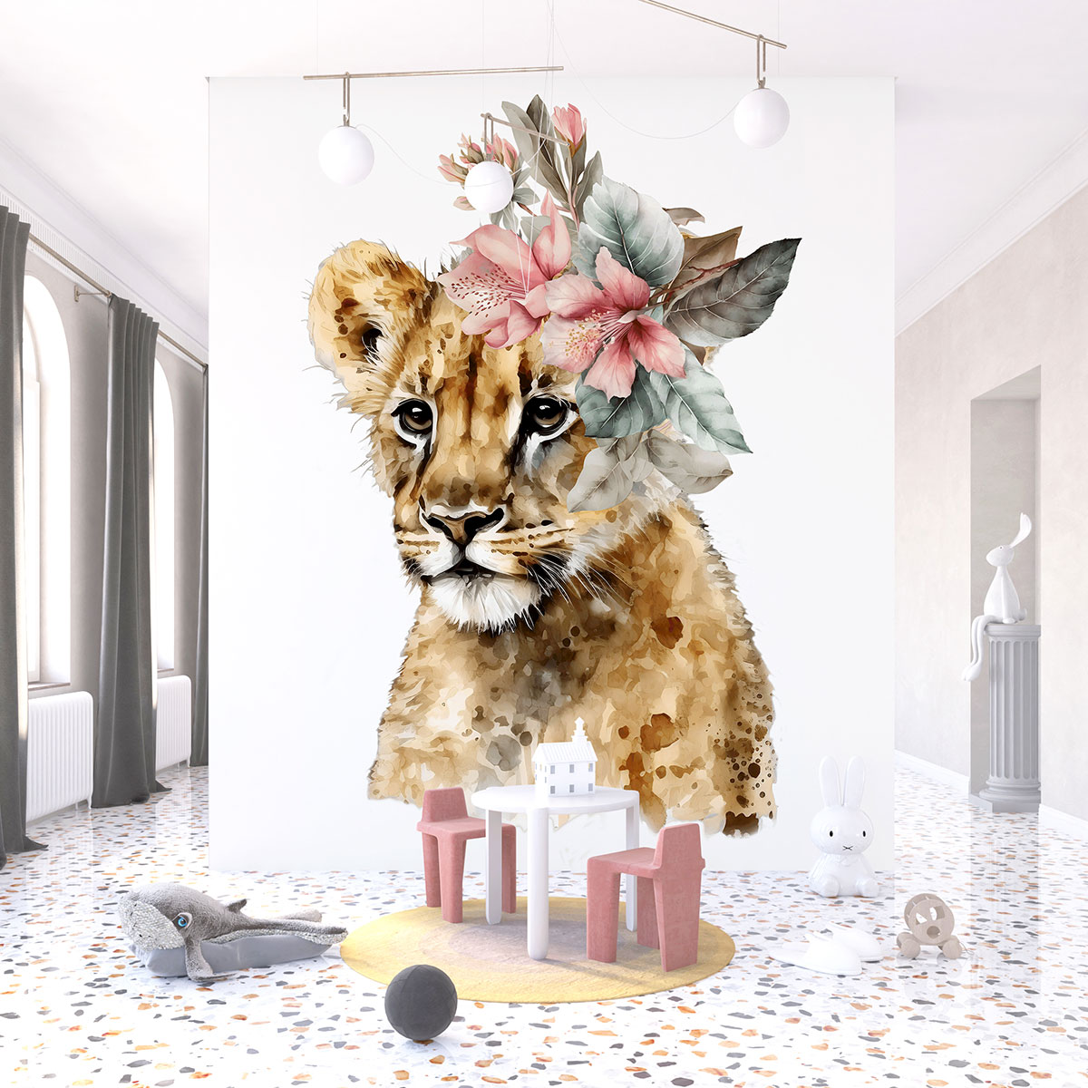 Carta da parati panoramica per bambini - Leonessa Fiori