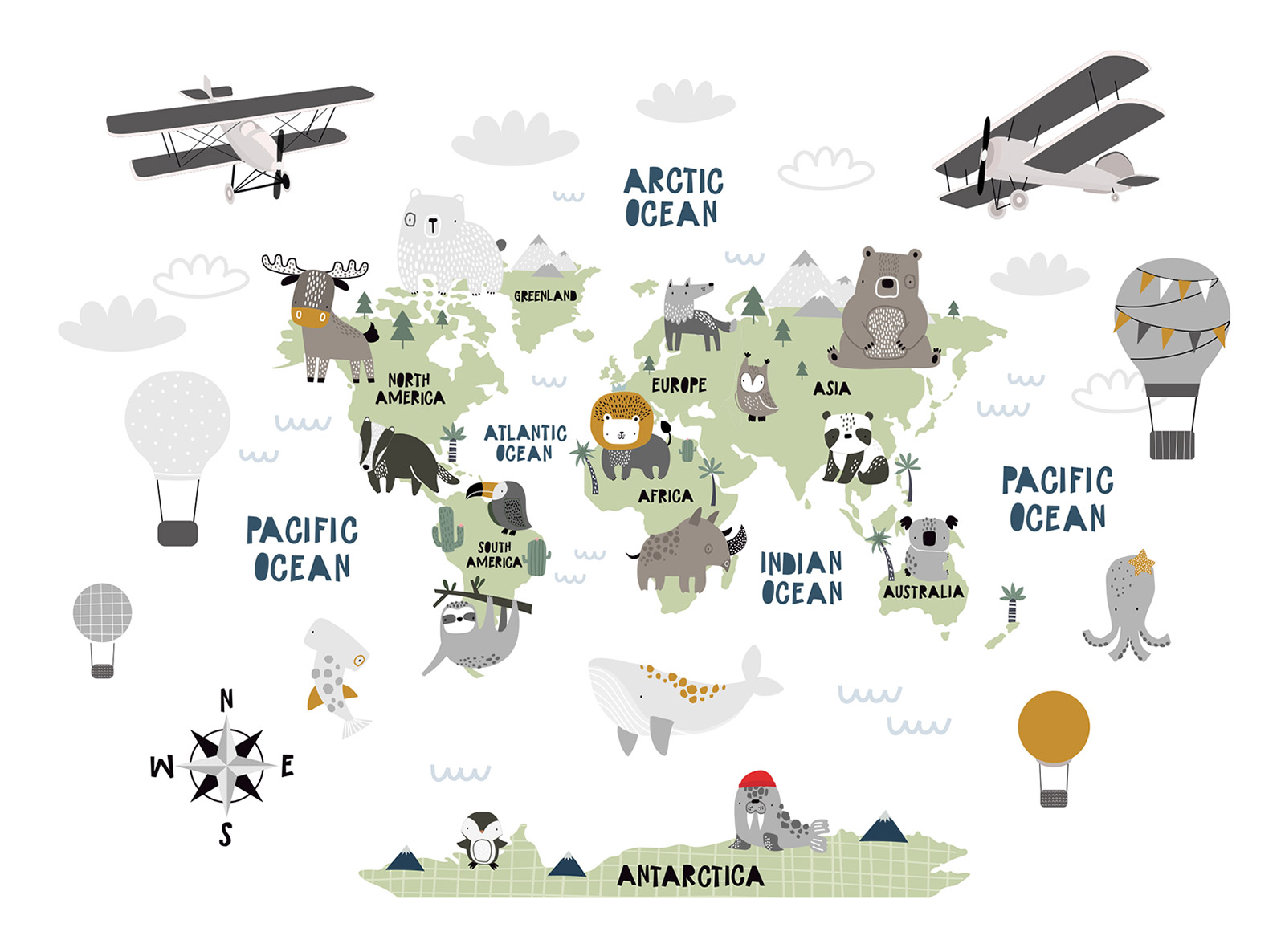 Carta da parati panoramica per bambini - Mappa del mondo