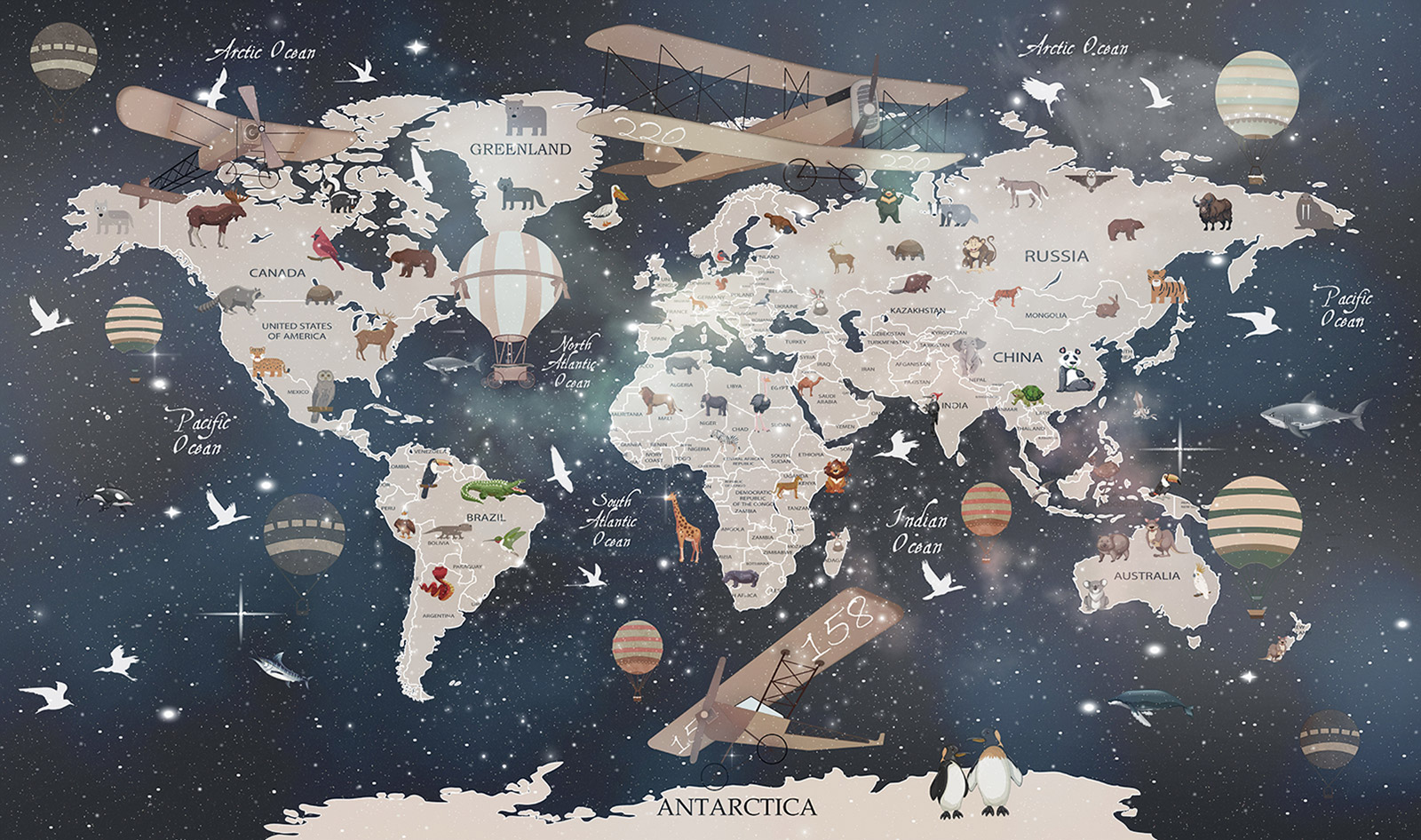 www.lumalea.it > Carte da parati > Carta da Parati Panoramica > Per i Bambini > Carta da Parati Panoramica > Carta da parati panoramica per bambini - Mappa del mondo