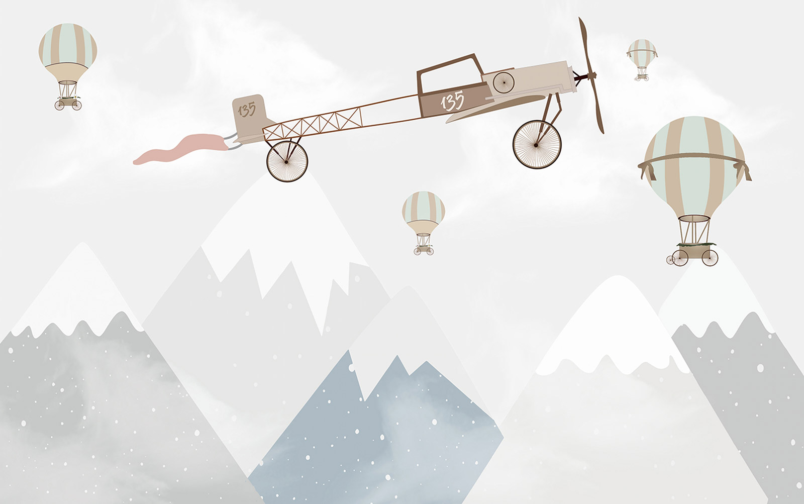 www.lumalea.it > Carte da parati > Carta da Parati Panoramica > Per i Bambini > Carta da Parati Panoramica > Carta da parati panoramica per bambini - Montagne Mongolfiere