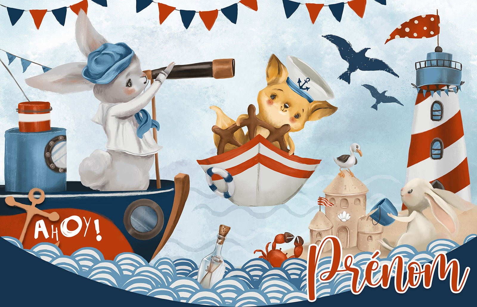 Carta da parati panoramica per bambini personalizzato - Animali Marini