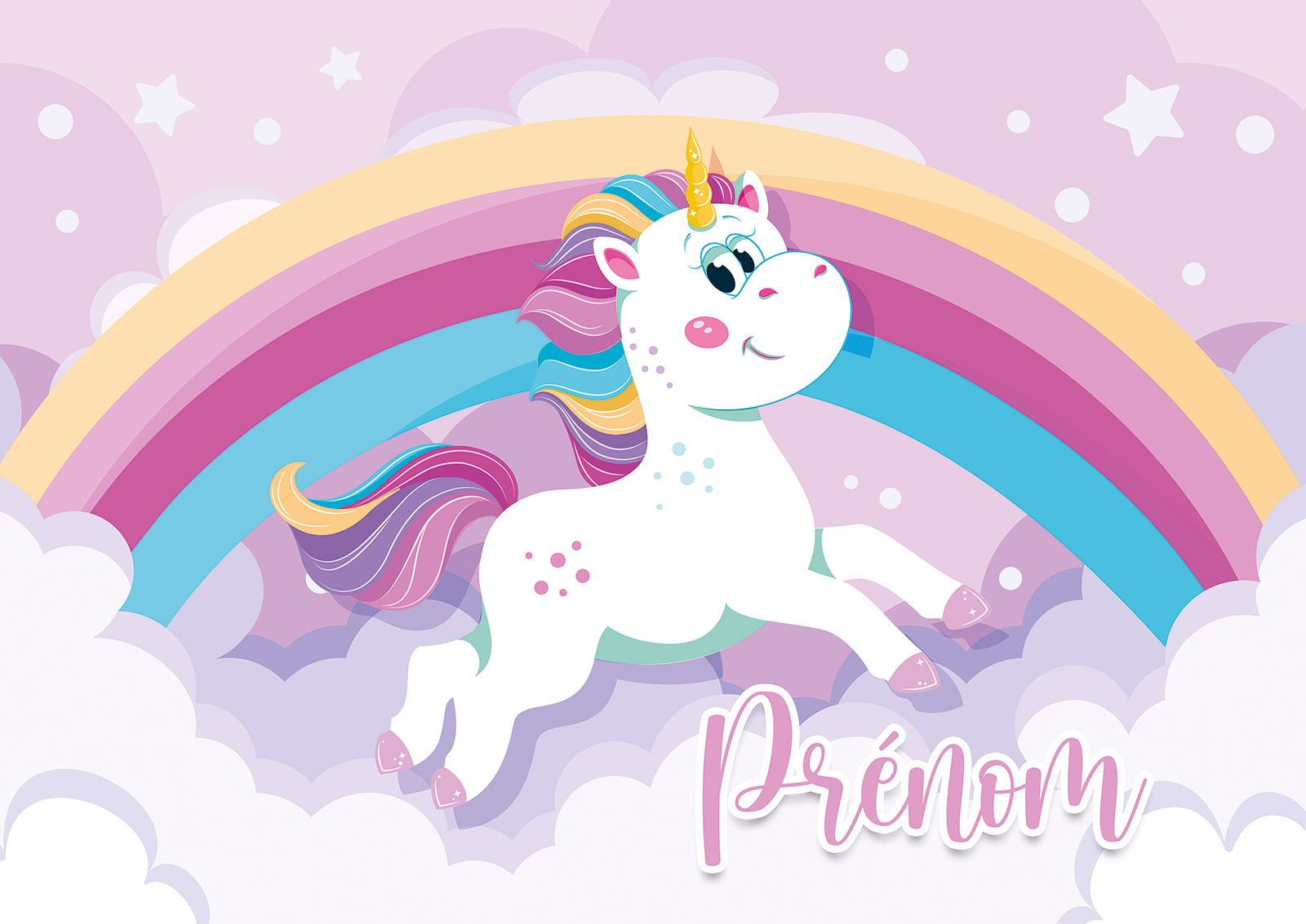 Carta da parati panoramica per bambini personalizzato - Unicorno arcobaleno