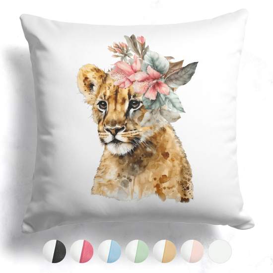 Cuscino bicolore personalizzato - Cucciolo di leone fiori