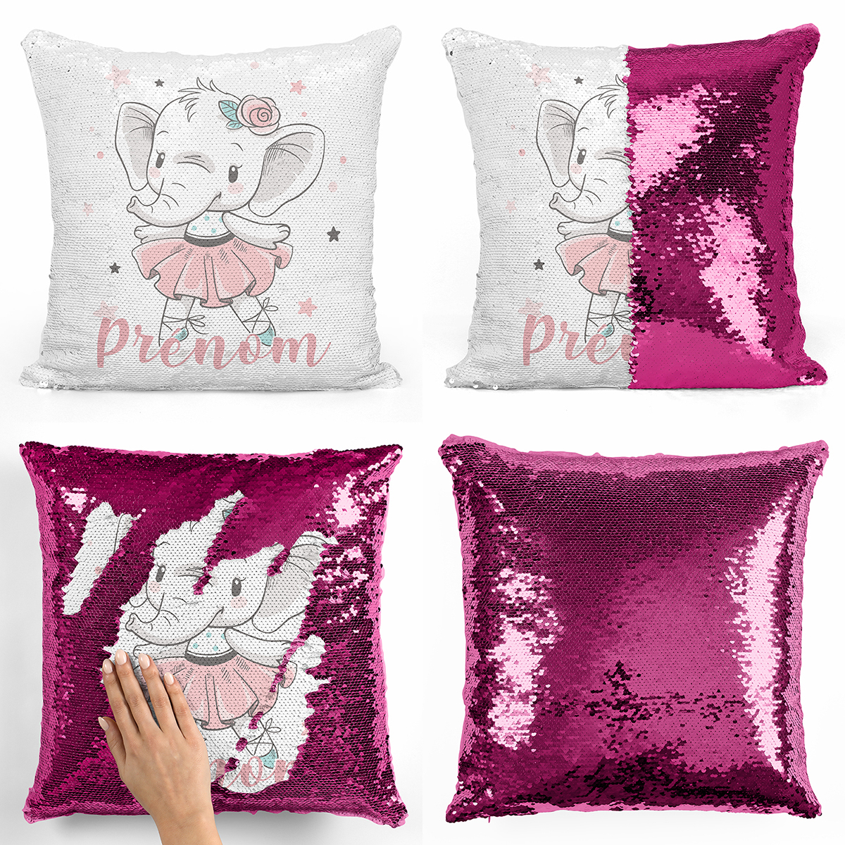 Cuscino Paillettes Personalizzato - Ballerina elefante