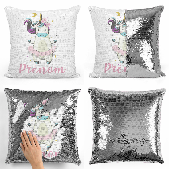 Cuscino Paillettes Personalizzato - Ballerina unicorno