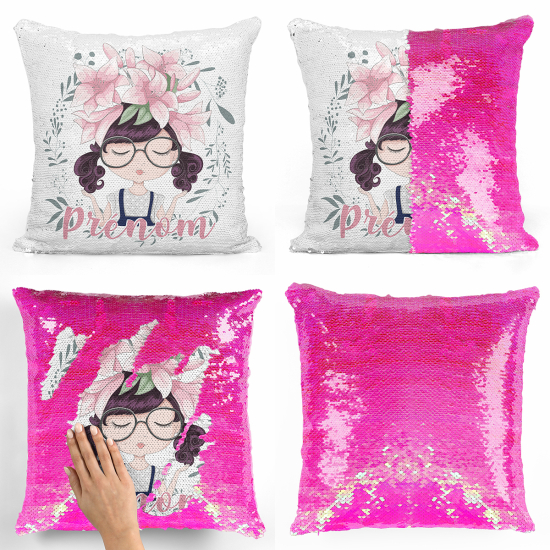 Cuscino Paillettes Personalizzato - Bambina con fiori