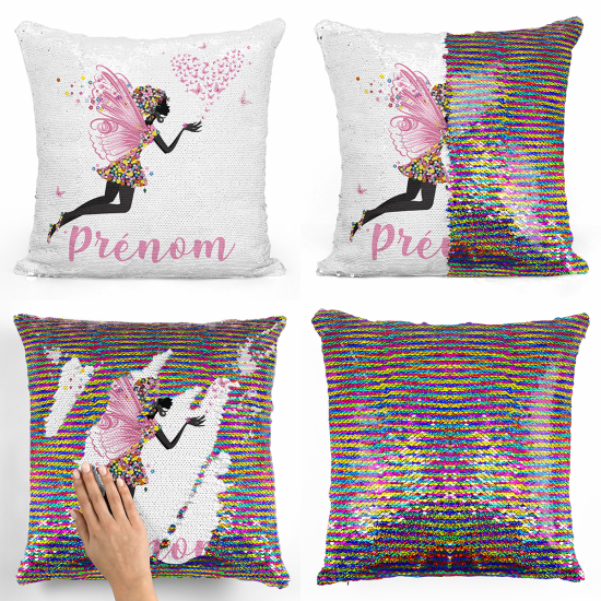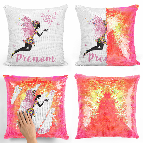 Cuscino Paillettes Personalizzato - Fata cuore farfalle