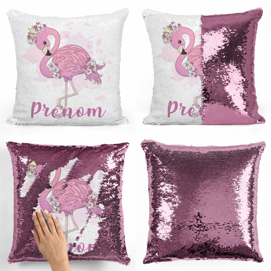 Cuscino Paillettes Personalizzato - Fenicottero rosa