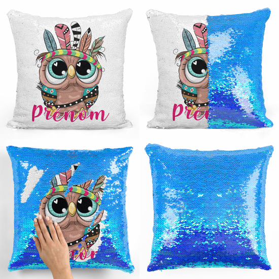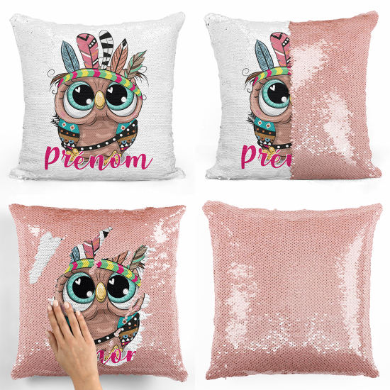 Cuscino Paillettes Personalizzato - Gufo indiano