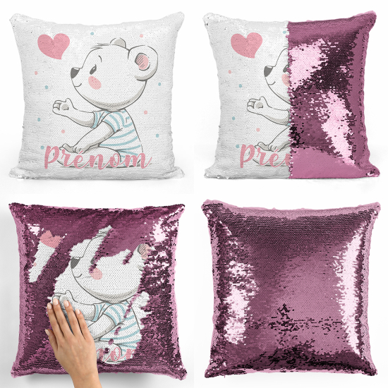 Cuscino Paillettes Personalizzato - Orsetto cuore