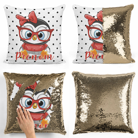 Cuscino Paillettes Personalizzato - Pinguino dagli occhiali
