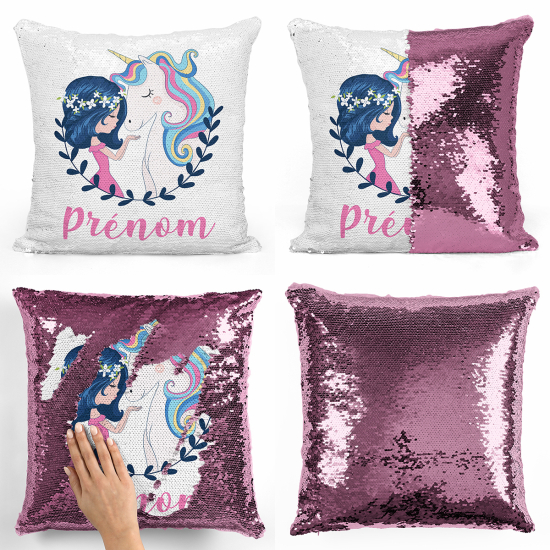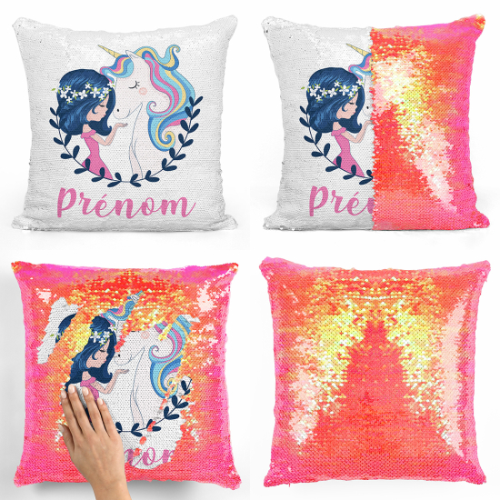 Cuscino Paillettes Personalizzato - Ragazza e unicorno