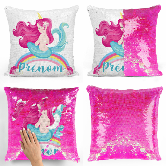 Cuscino Paillettes Personalizzato - Sirena arcobaleno
