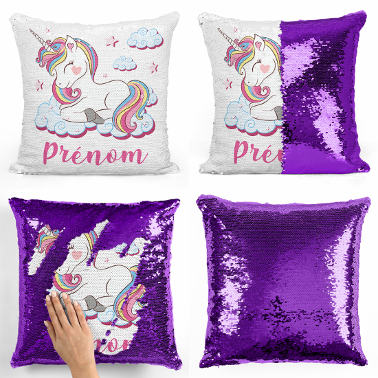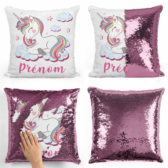 Cuscino Paillettes Personalizzato - Unicorno nuvole