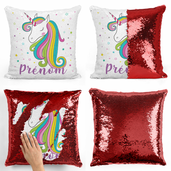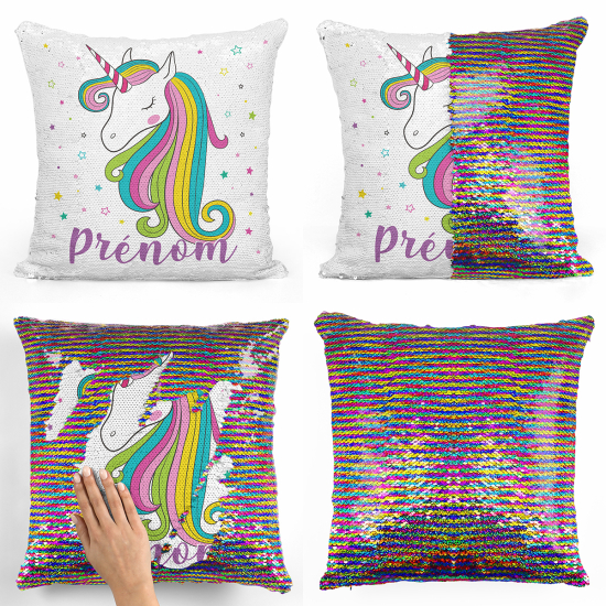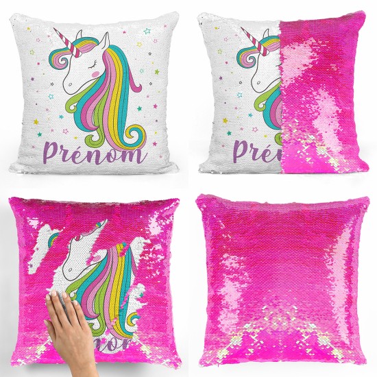 Cuscino Paillettes Personalizzato - Unicorno stelle