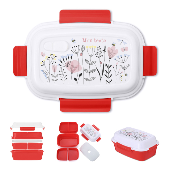 Con una capacità di 1000 ml, queste scatole pranzo personalizzate sono divise in tre compartimenti modulari e sono dotate di un blocco ghiaccio removibile per mantenere gli alimenti freschi. Il loro coperchio ermetico può essere personalizzato con un incantevole motivo e il nome del vostro bambino.