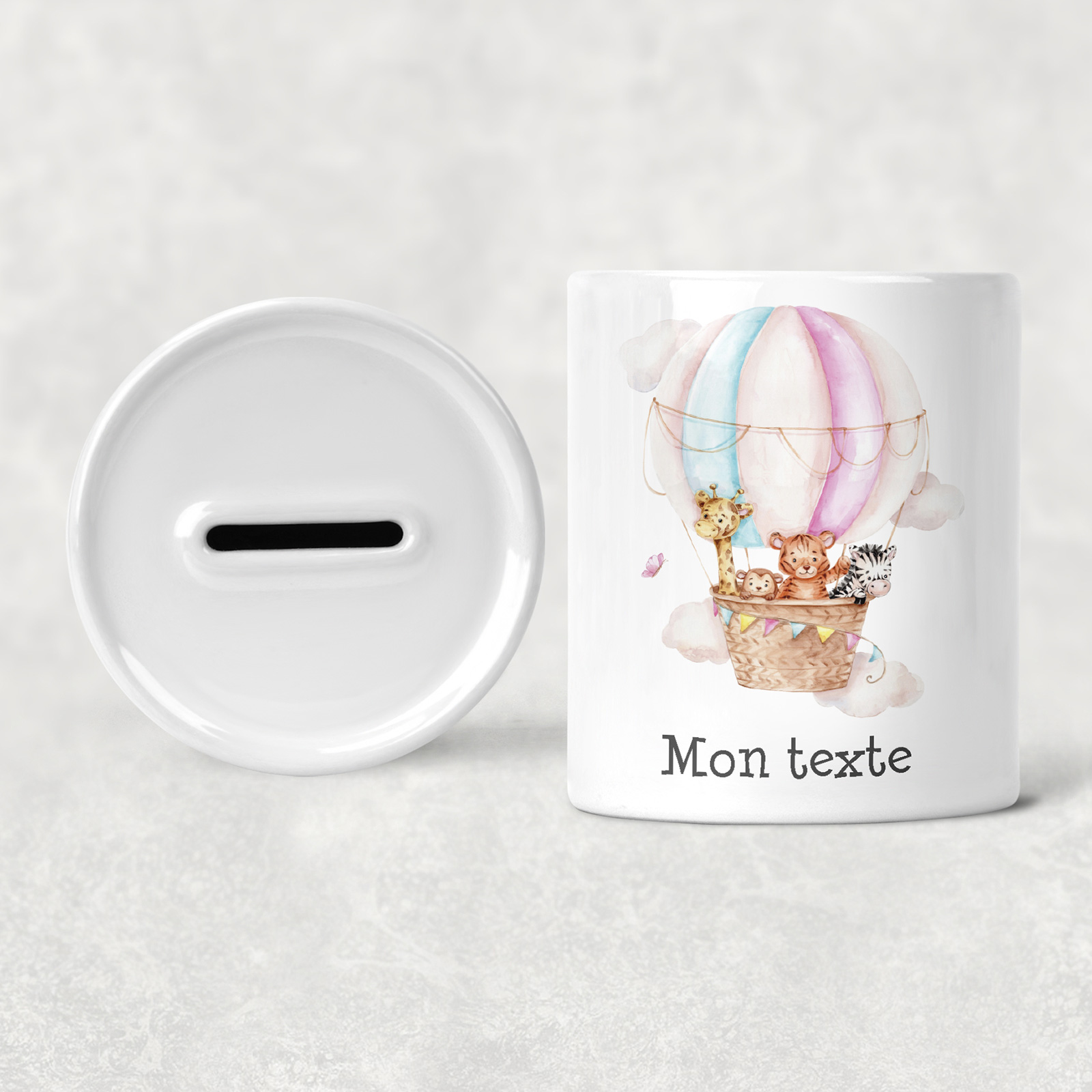 Salvadanaio per bambini personalizzato - Animali Mongolfiera
