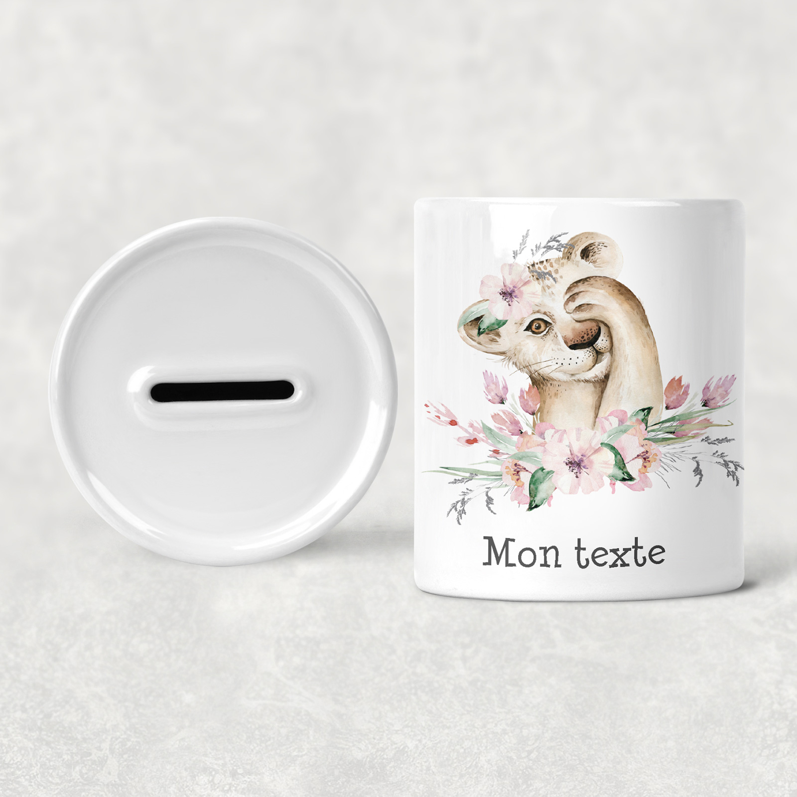 Salvadanaio per bambini personalizzato - Cucciolo di Leone Fiori