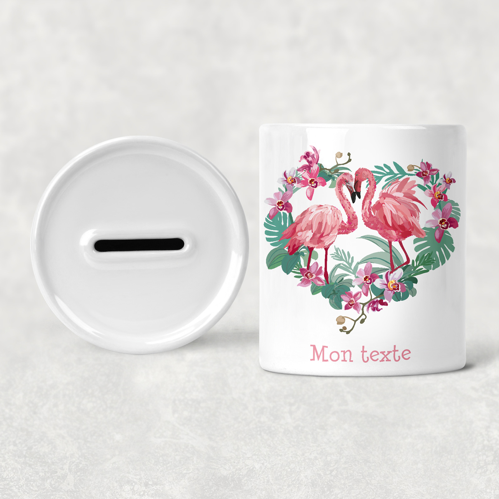 Salvadanaio per bambini personalizzato - Fenicotteri rosa Cuore