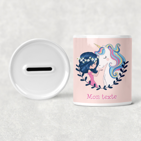 Salvadanaio per bambini personalizzato - Ragazza e Unicorno