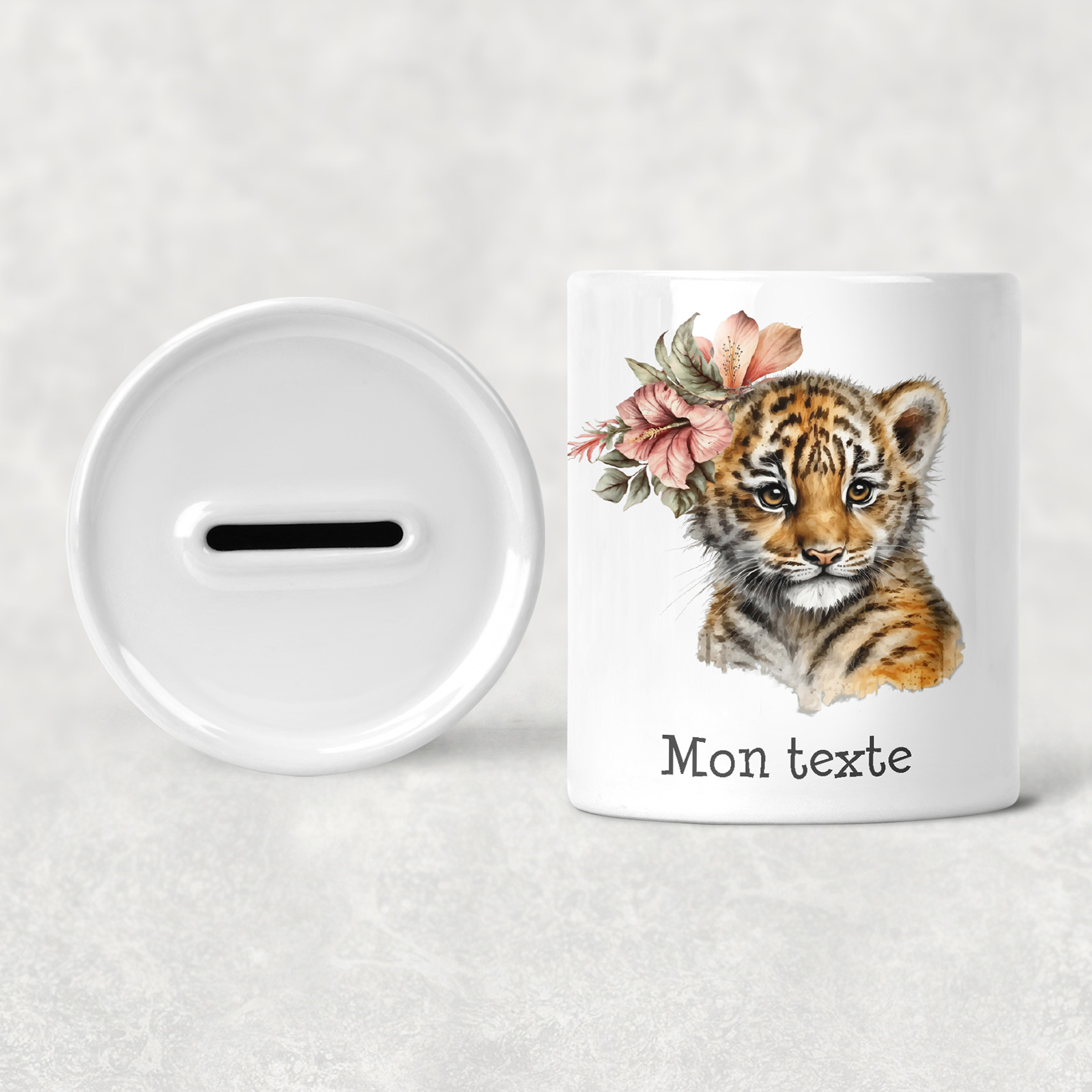 Salvadanaio per bambini personalizzato - Tigre Fiori