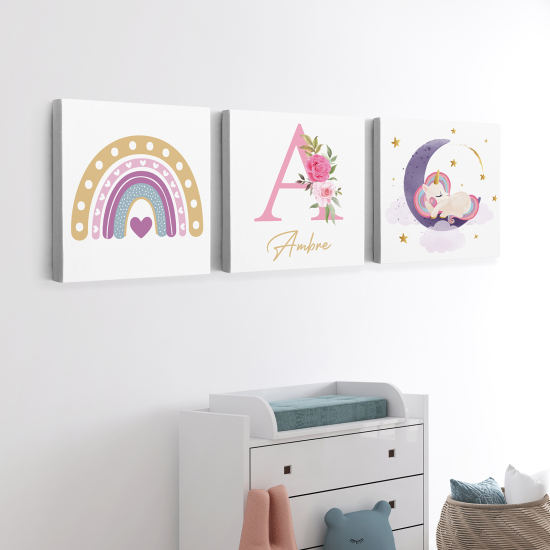 Set di 3 Tele per bambini personalizzate - Arcobaleno Unicorno