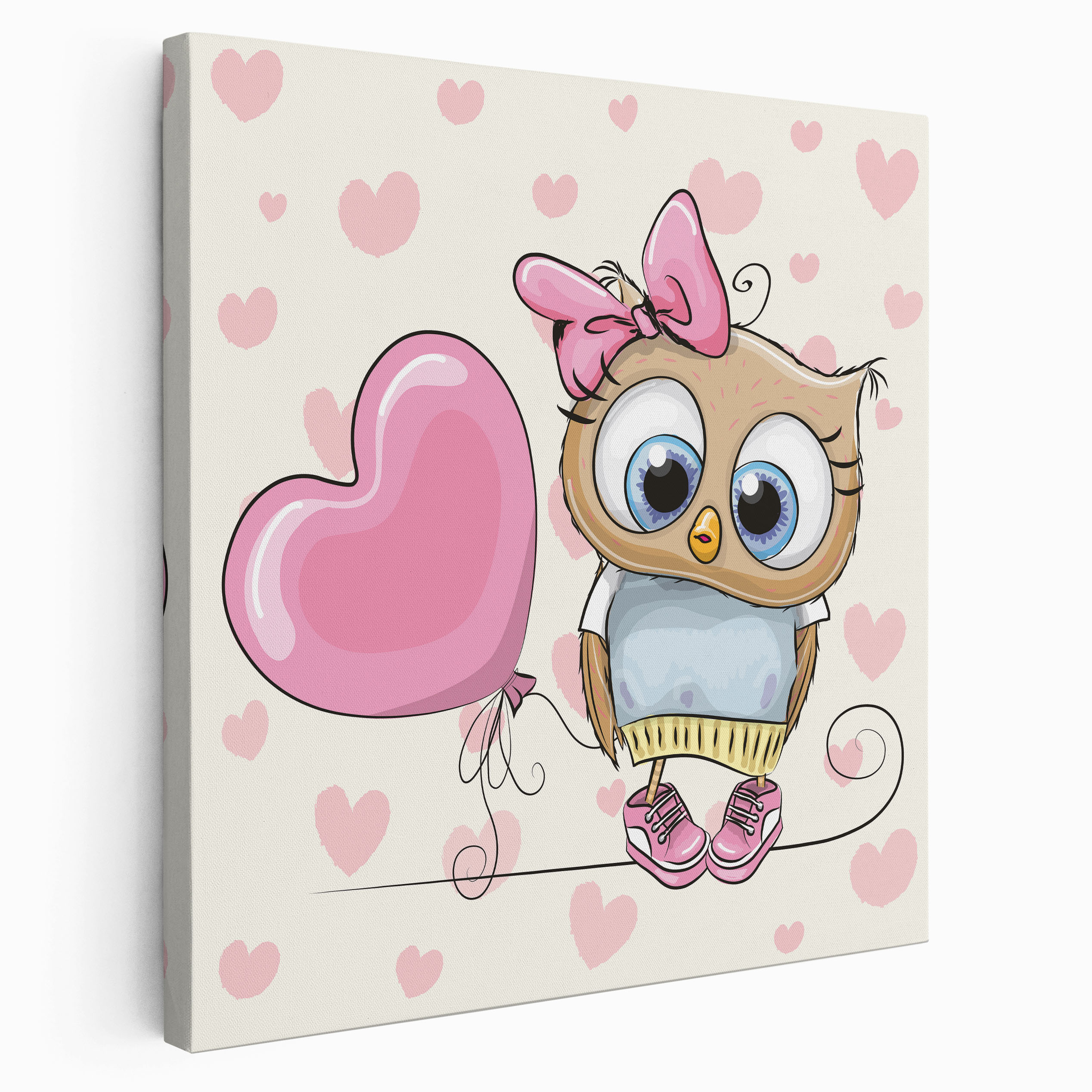 Stampa su tela Quadrata per Bambini - Civetta cuori
