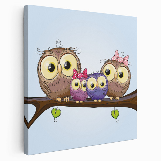 Stampa su tela Quadrata per Bambini - Civette sul ramo