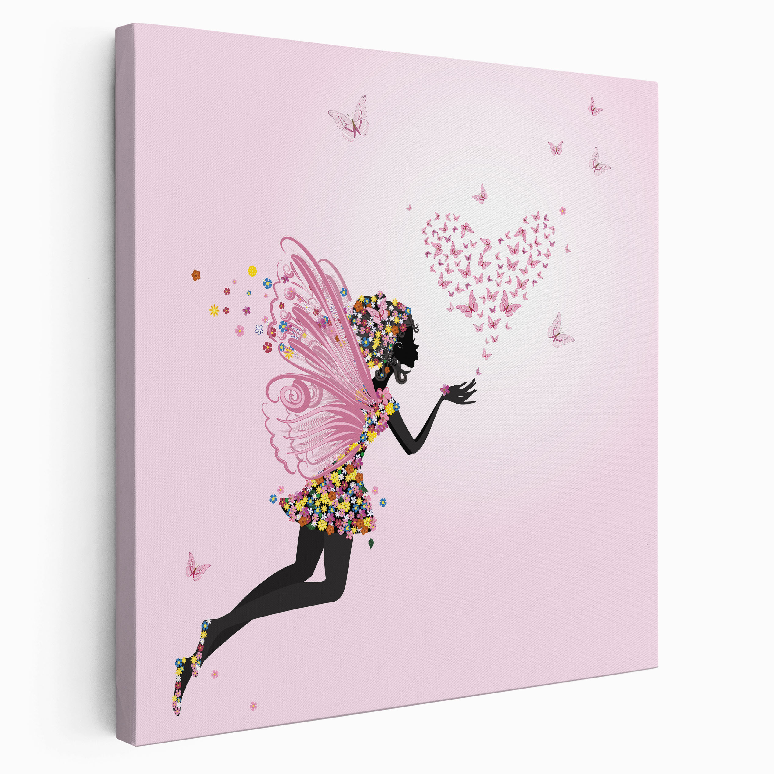 Stampa su tela Quadrata per Bambini - Fata cuori farfalle