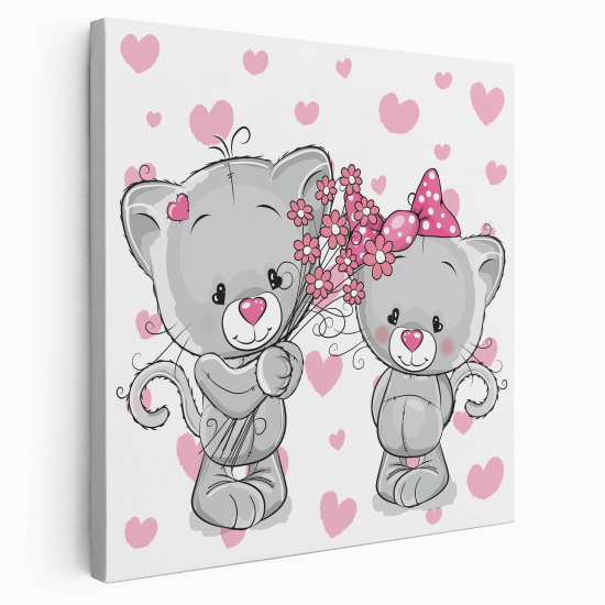Stampa su tela Quadrata per Bambini - Gatti cuori