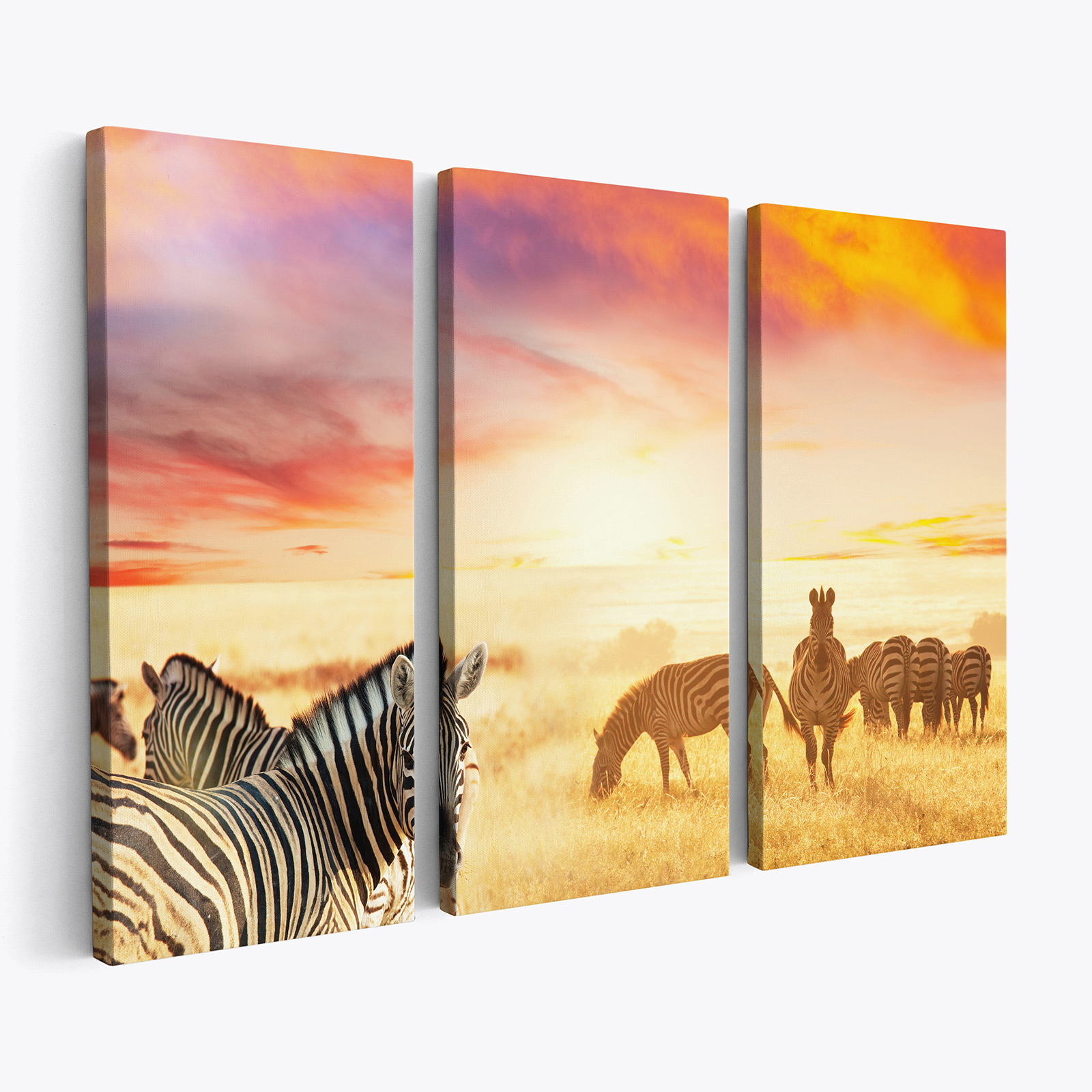 www.lumalea.it > Quadri > Quadri Trittici > Modelli per Adulti > Animali > Stampa Trittico su tela - Zebre Savana