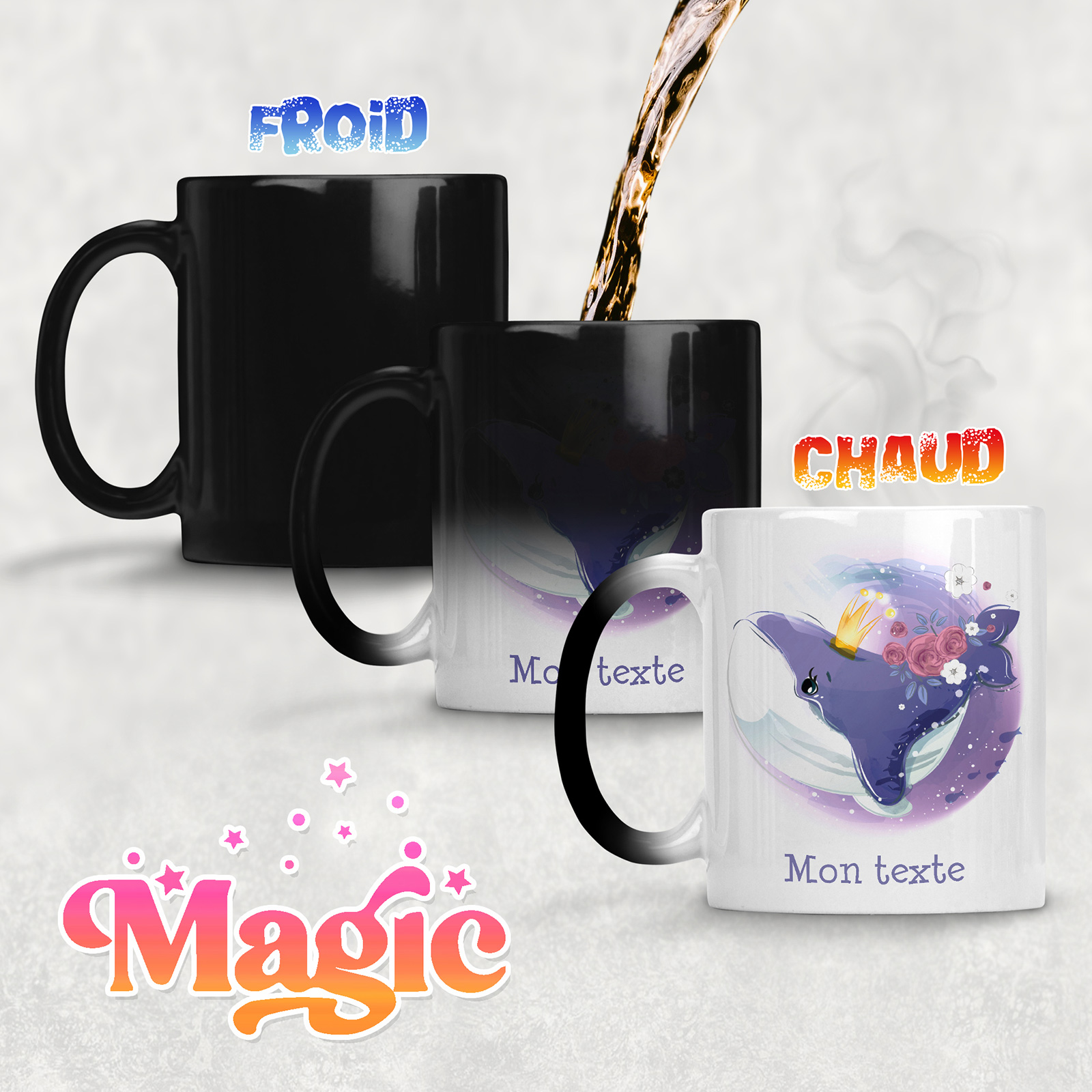 La nostra Tazza Magica è molto più di un semplice contenitore. È un'opera d'arte che si rivela quando vi versi il caffè, il tè o qualsiasi altro liquido caldo. La sua superficie sembra inizialmente nera e misteriosa, ma appena entra in gioco il calore, la magia accade!