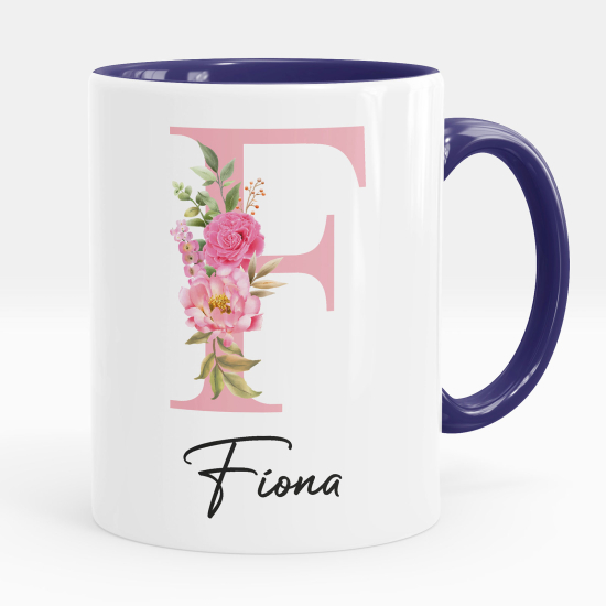 Una tazza con manico e all'interno disponibile in bianco o a colori, su cui puoi aggiungere un nome o un breve messaggio per renderlo unico...