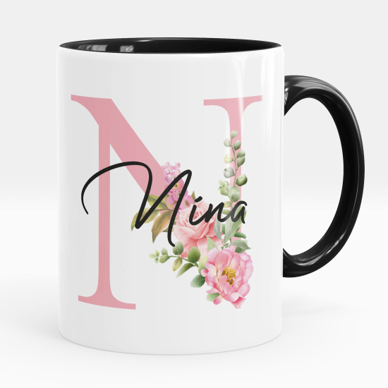 Una tazza con manico e all'interno disponibile in bianco o a colori, su cui puoi aggiungere un nome o un breve messaggio per renderlo unico...