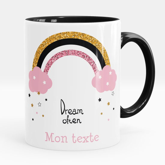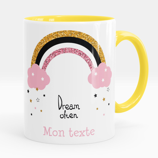 Una tazza con manico e all'interno disponibile in bianco o a colori, su cui puoi aggiungere un nome o un breve messaggio per renderlo unico...