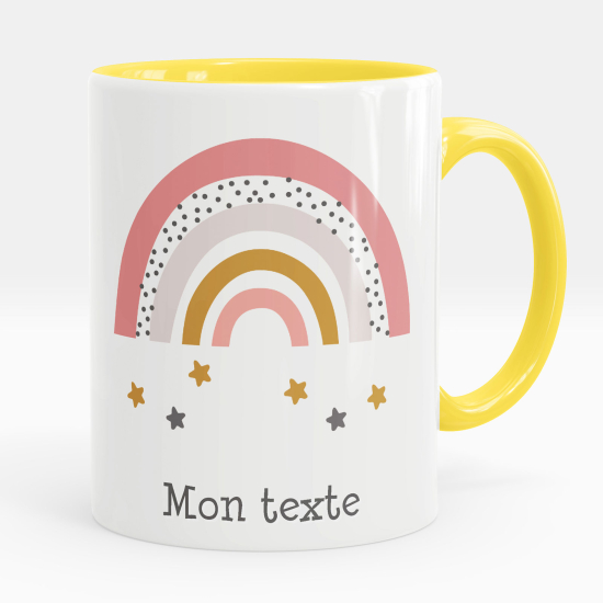 Una tazza con manico e all'interno disponibile in bianco o a colori, su cui puoi aggiungere un nome o un breve messaggio per renderlo unico...