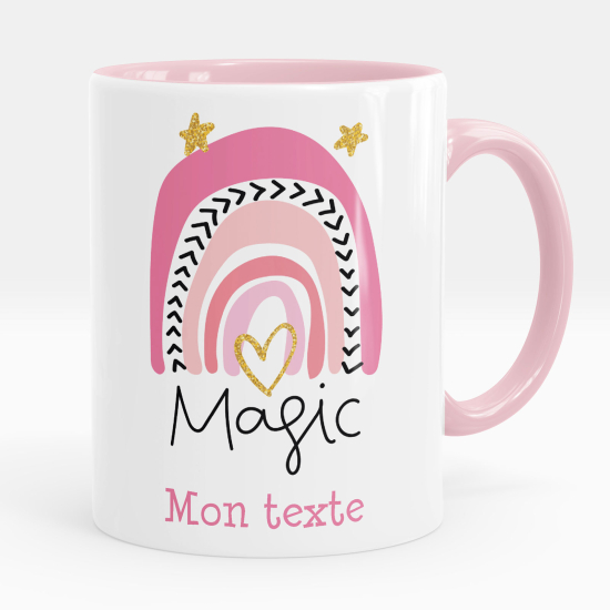 Una tazza con manico e all'interno disponibile in bianco o a colori, su cui puoi aggiungere un nome o un breve messaggio per renderlo unico...