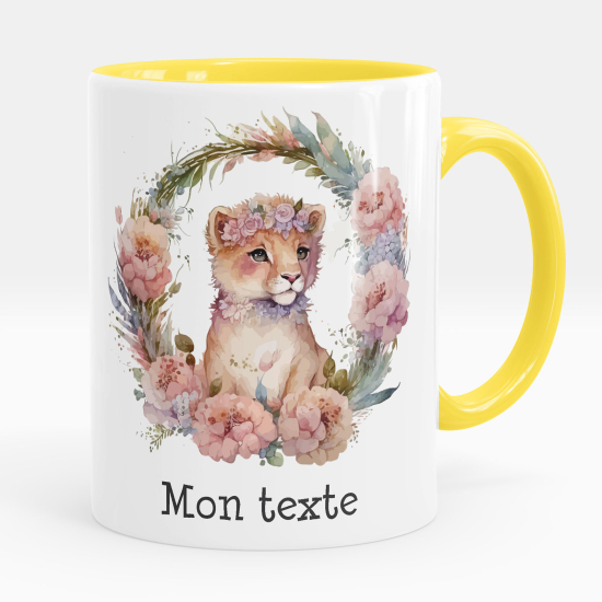 Una tazza con manico e all'interno disponibile in bianco o a colori, su cui puoi aggiungere un nome o un breve messaggio per renderlo unico...
