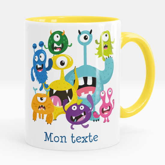 Una tazza con manico e all'interno disponibile in bianco o a colori, su cui puoi aggiungere un nome o un breve messaggio per renderlo unico...