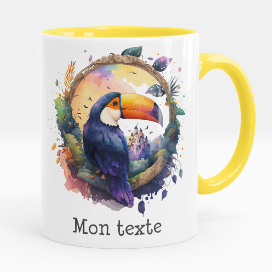 Una tazza con manico e all'interno disponibile in bianco o a colori, su cui puoi aggiungere un nome o un breve messaggio per renderlo unico...