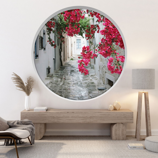 Adesivo Murale - Illusione ottica - Arco rotondo - Fiori farfalla
