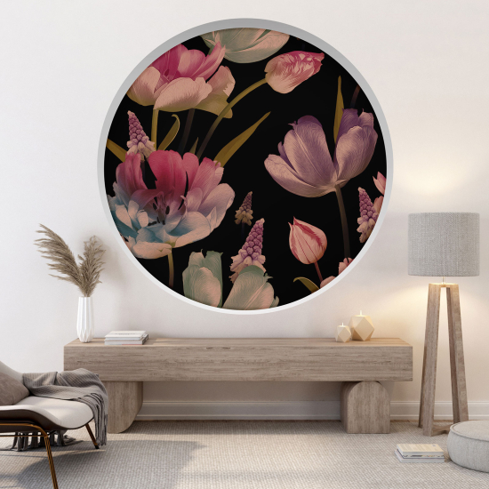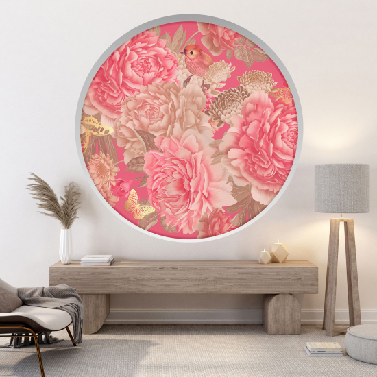 Adesivo Murale - Illusione ottica - Arco rotondo - Fiori pappagallo