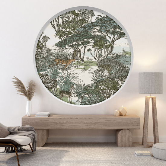 Adesivo Murale - Illusione ottica - Arco rotondo - Giungla Animali