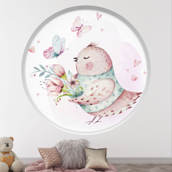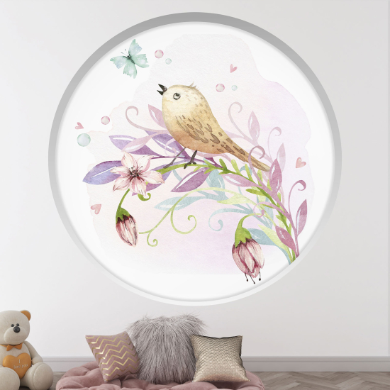 Adesivo Murale - Illusione ottica - Arco rotondo per Bambini - Uccello